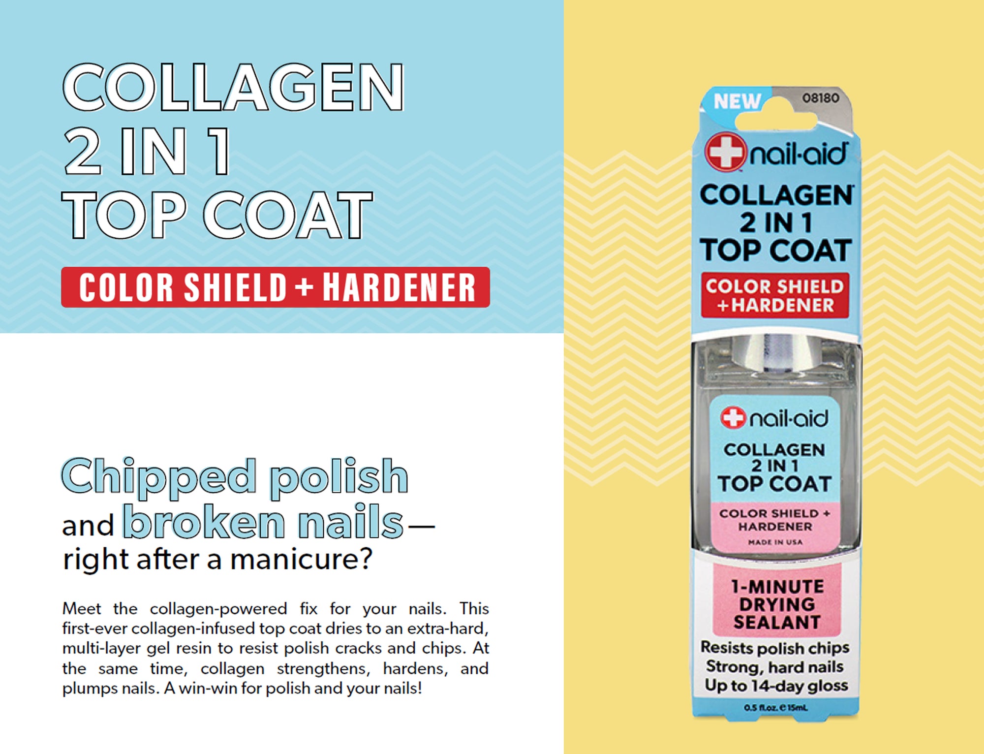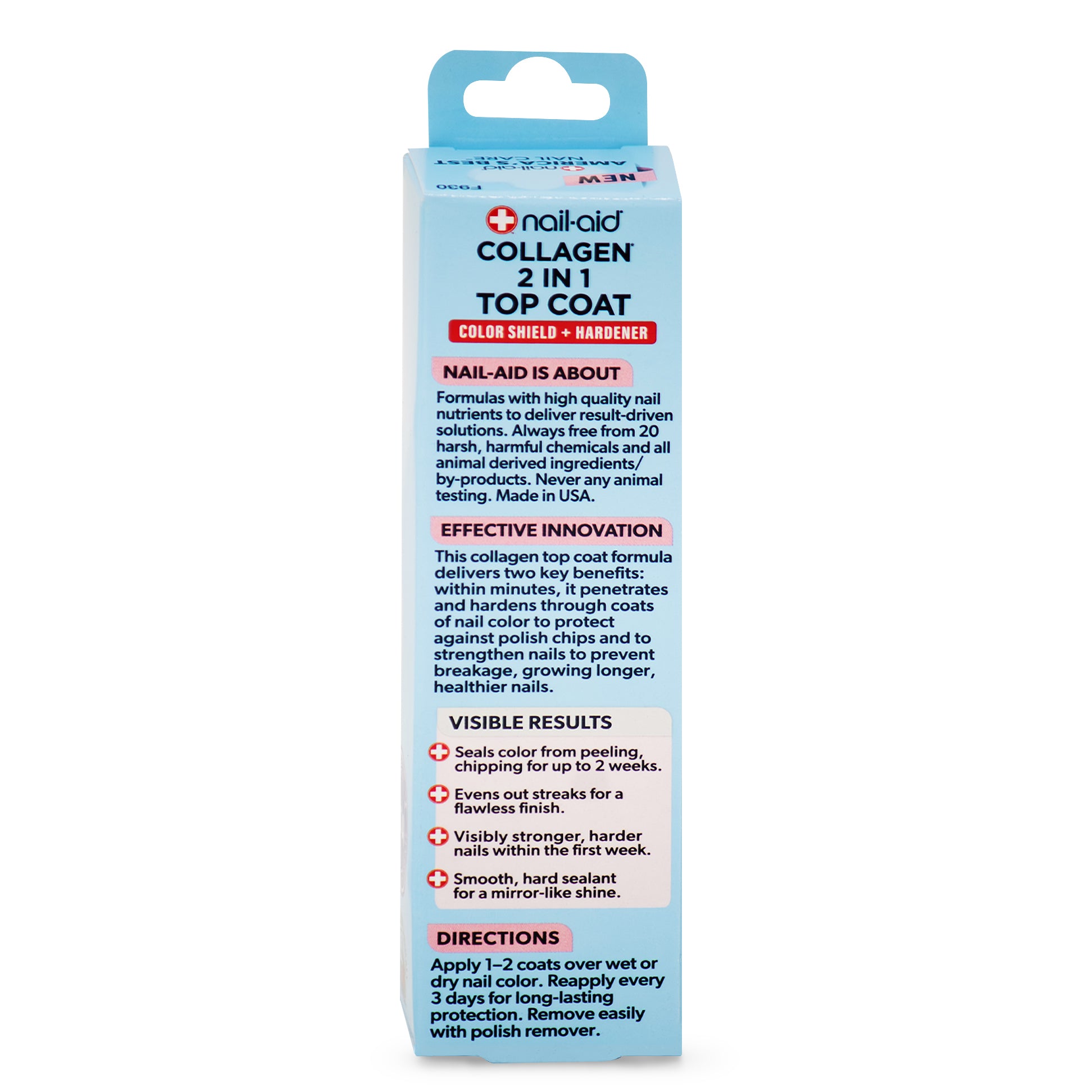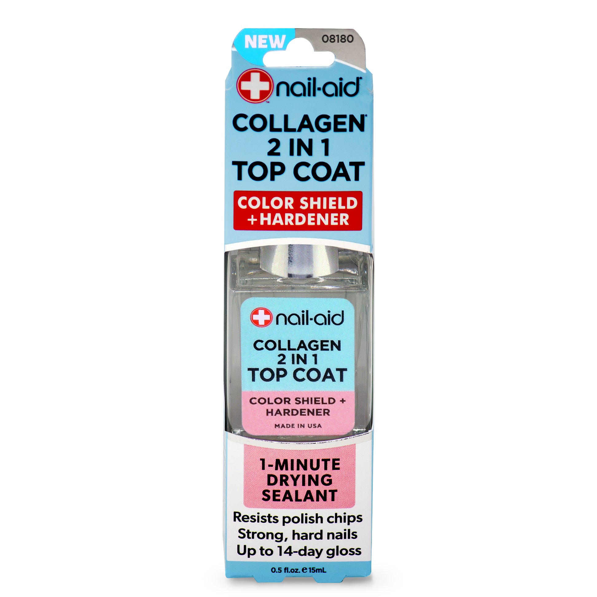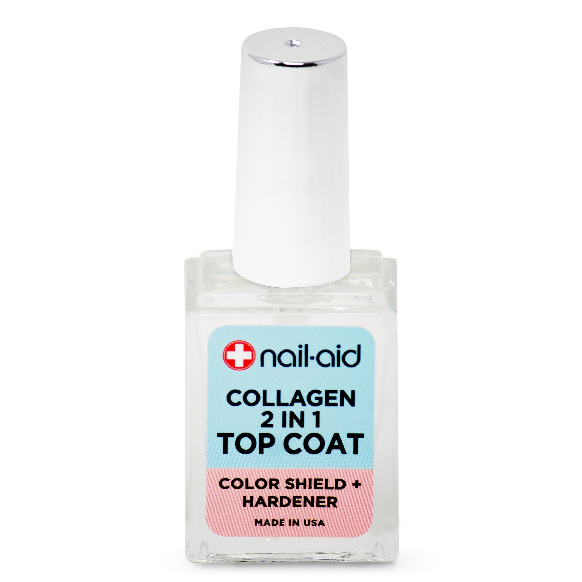 - Collagen 2-in-1 Strengthening Top Coat: Collagen-infused nail treatment that works as both a nail strengthener and protective top coat, helping harden nails while sealing in nail color for a smooth, glossy finish.